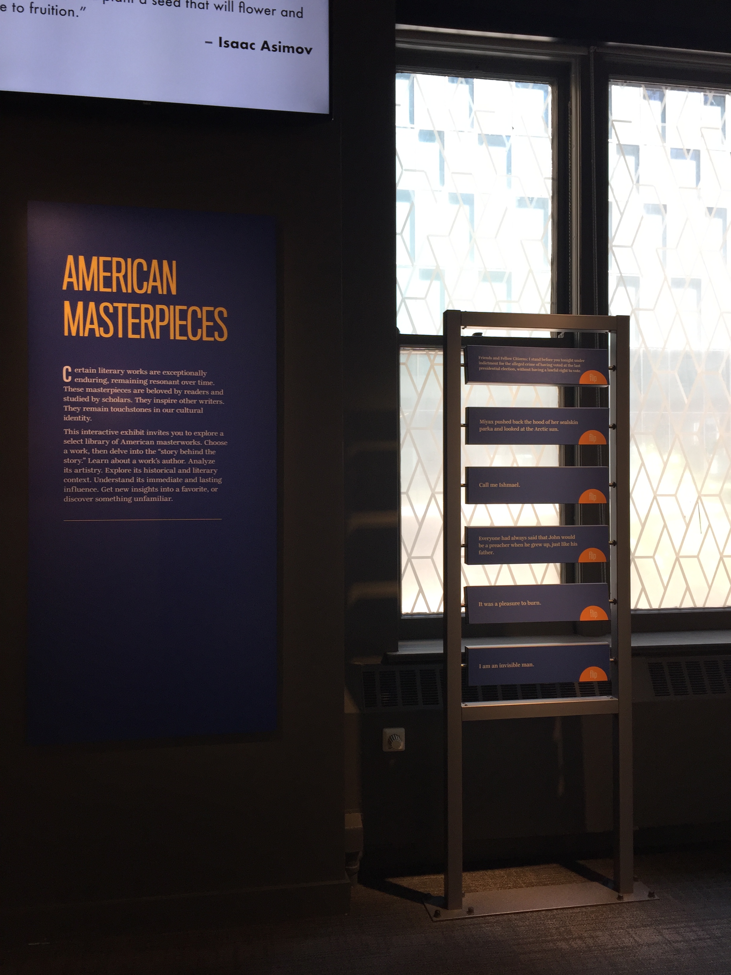 American Writers Museum-Chicago 7 N September 6, 2018 Click to share on Facebook (Opens in new window) Facebook Click to share on X (Opens in new window) X Click to share on Pinterest (Opens in new window) Pinterest More Click to share on Tumblr (Opens in new window) Tumblr Click to email a link to a friend (Opens in new window) Email Click to share on LinkedIn (Opens in new window) LinkedIn Click to share on Pocket (Opens in new window) Pocket Like Loading... Published by N Writer of all things, some of which are pretty good. View all posts by N Published September 6, 2018