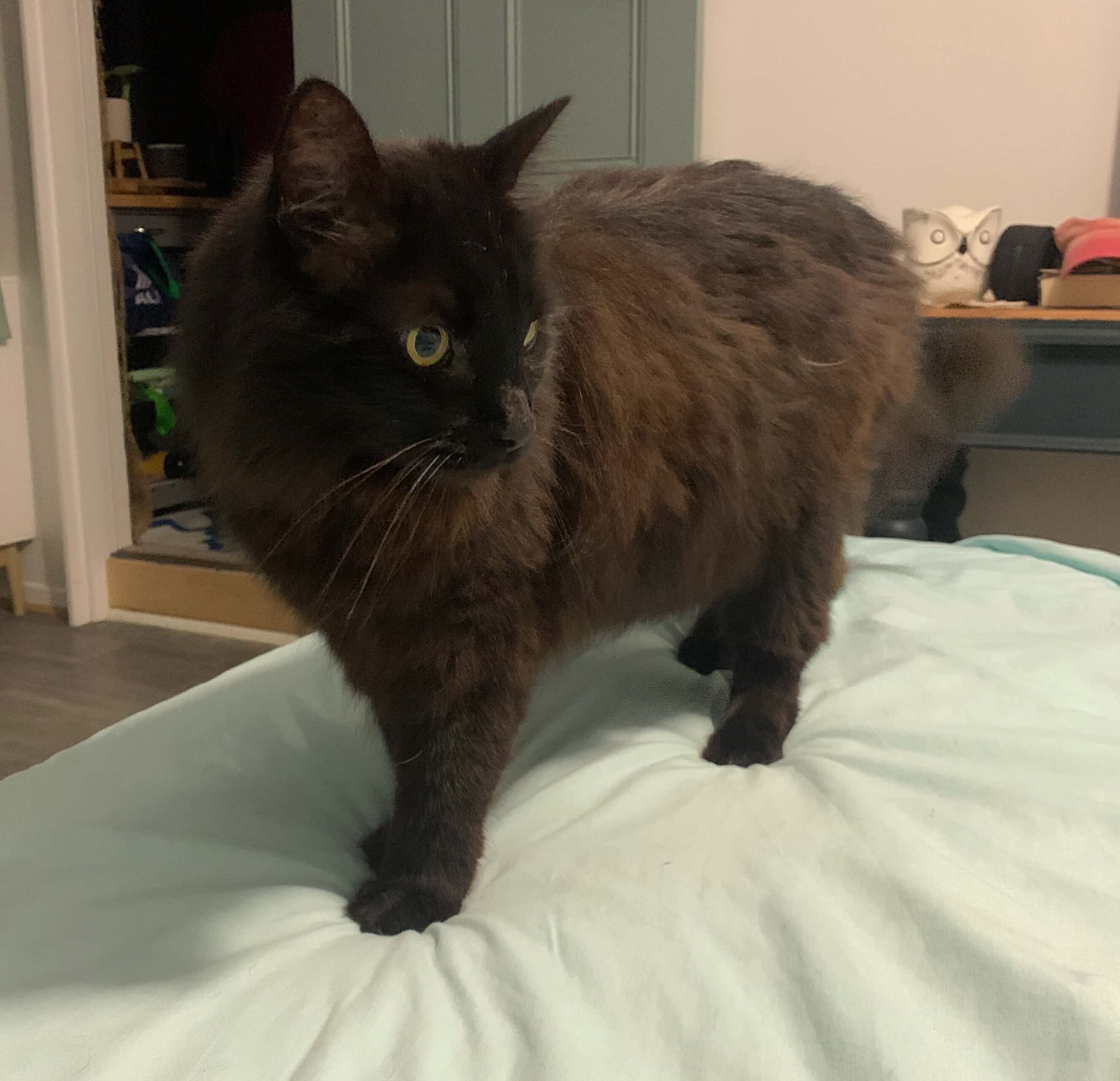 King cat I strut on your bed,walking over your REM sleep—hail your feline king. Rate this: Click to share on Facebook (Opens in new window) Facebook Click to share on X (Opens in new window) X Click to share on Pinterest (Opens in new window) Pinterest More Click to share on Tumblr (Opens in new window) Tumblr Click to email a link to a friend (Opens in new window) Email Click to share on LinkedIn (Opens in new window) LinkedIn Click to share on Pocket (Opens in new window) Pocket Like Loading...